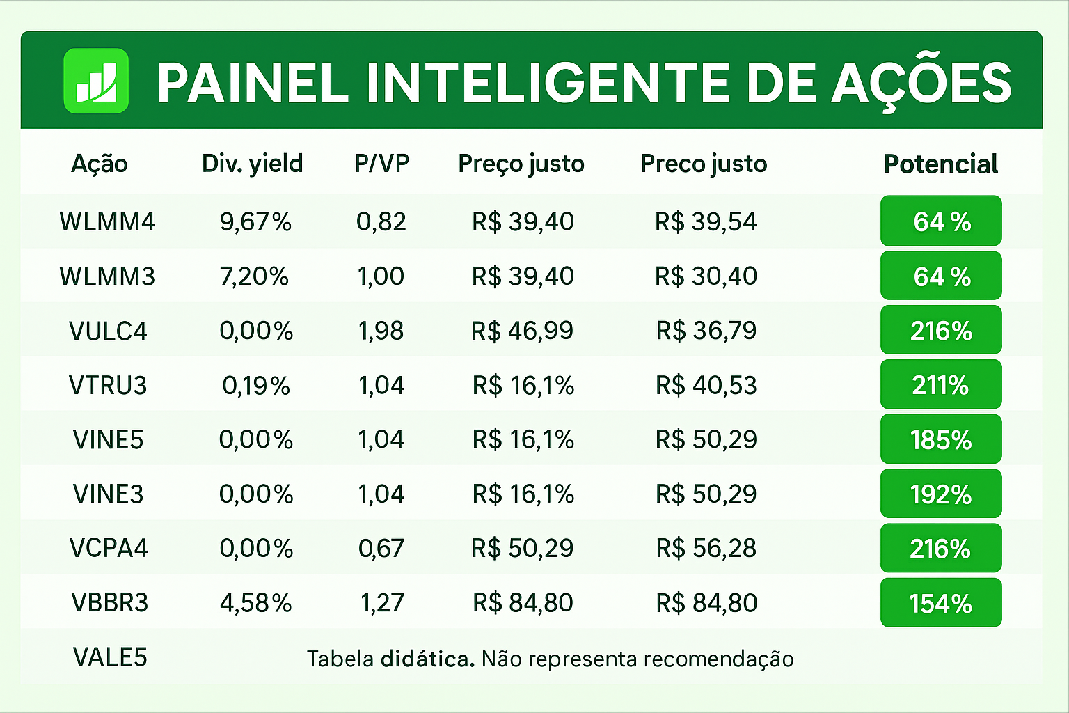 O Painel Inteligente analisa automaticamente empresas da Bolsa e mostra, em poucos cliques, onde estão as melhores oportunidades por preço e potencial.